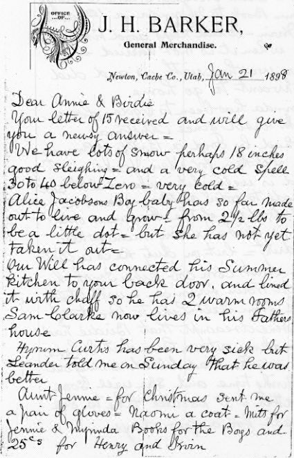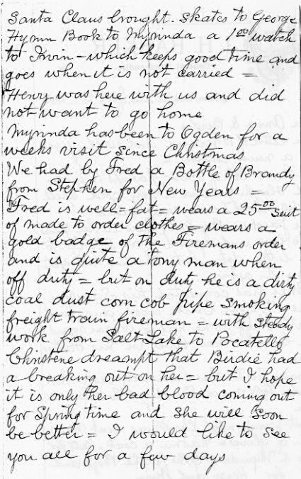 Aunt Jennie = for Christmas sent me a pair of gloves = Naomi a coat = mits for Jennie