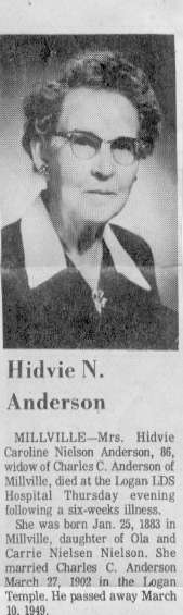 Hidvie C. ANDERSON Documents Page Newspaper Funeral Notice